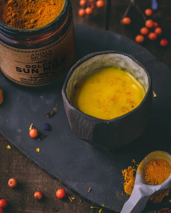 Our Golden Sun Milk contains activating plants, such as powerhouses Maca and Cordyceps, along with delicious and organic chai spices such as Cinnamon, Cardamom, Black Pepper, and Vanilla.