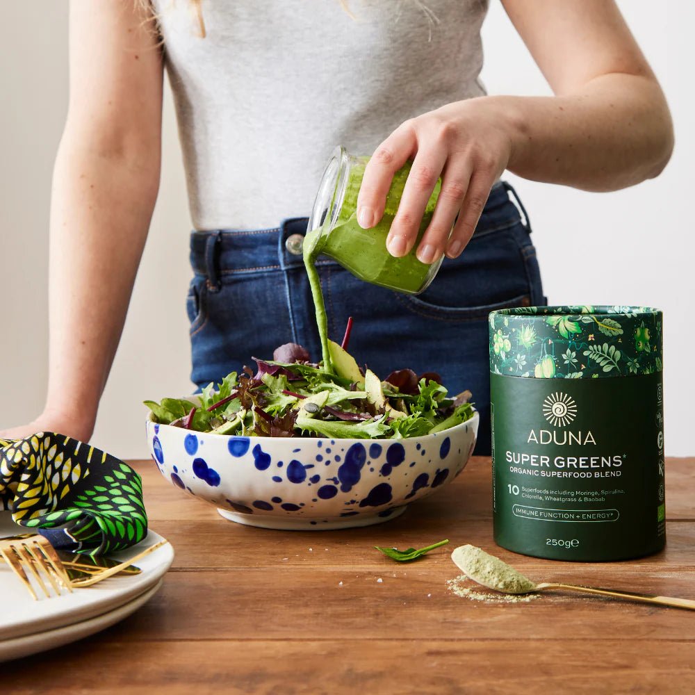 With a fresh, zesty flavour, Aduna Super Greens Blend is a mix of 10 daily superfoods, adaptogens and nootropics, including Lion's Mane, Moringa and Baobab.