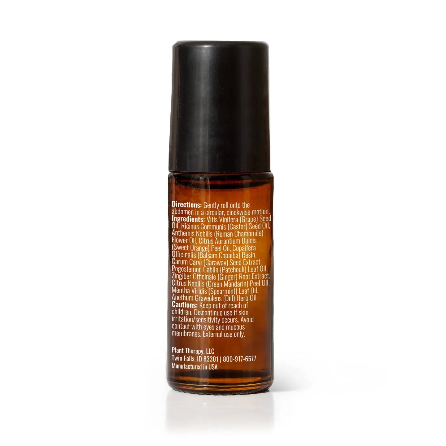 Ingredients: Vitis Vinifera (Grape) Seed Oil, Ricinus Communis (Castor) Seed Oil, Anthemis Nobilis (Roman Chamomile) Flower Oil, Citrus Aurantium Dulcis (Sweet Orange) Peel Oil, Copaifera Officinalis (Balsam Copaiba) Resin, Carum Carvi (Caraway) Seed Extract, Pogostemon Cablin (Patchouli) Leaf Oil, Zingiber Officinale (Ginger) Root Extract, Citrus Nobilis (Green Mandarin) Peel Oil, Mentha Viridis (Spearmint) Leaf Oil, Anethum Graveolens (Dill) Herb Oil