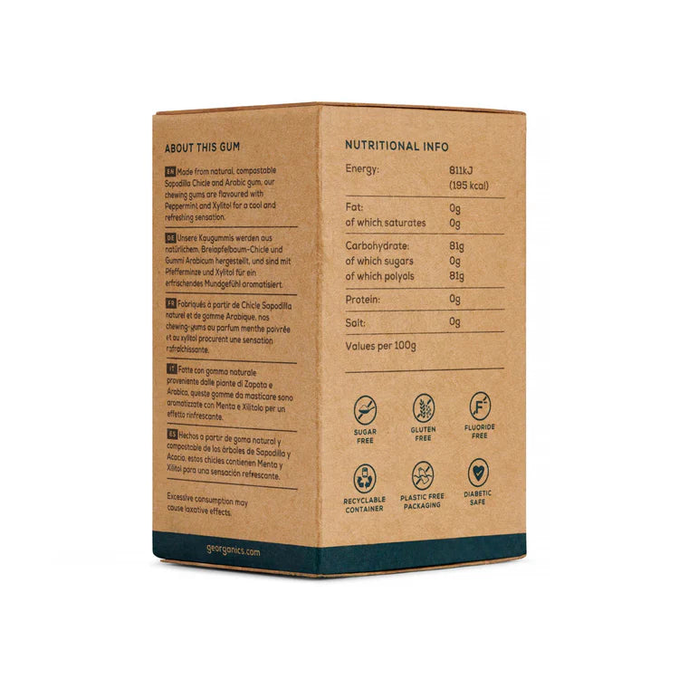 Experience the benefits of our Peppermint Chewing Gum, made from Chicle and Arabic gum, sourced from the Sapodilla and Acacia trees. This natural chewing gum is flavoured with Peppermintand Xylitol, providing a cool, refreshing mouth sensation. Perfect for freshening breath and promoting oral hygiene on the go, our gum helps remove food particles and bacteria associated with bad breath and tooth decay.