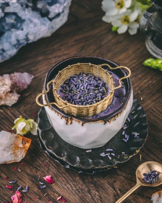 Its double handles rest gently on the rim and can be used to brew or strain loose-leaf tea, flowers, and more. Over time, the brass will acquire a rich patina.